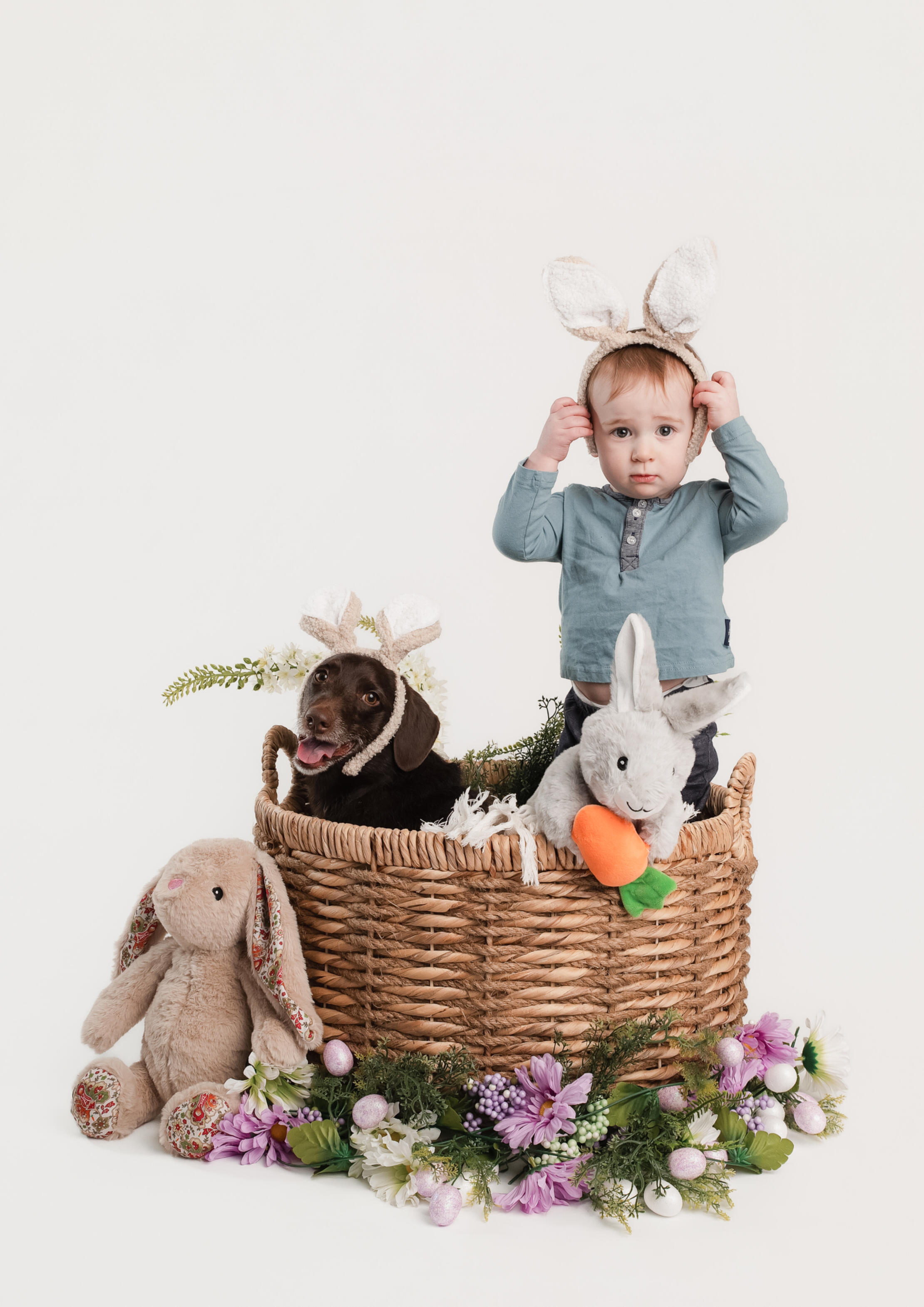 Our Easter Mini Sessions are perfect for both kids and pets. For just $55, enjoy a dedicated 20-minute photo session in our festive spring setup.Your session includes a digital proofing gallery for you to choose your top pick. You'll receive one high-quality retouched digital file and a bonus 4x6 print to take home the very same day!
